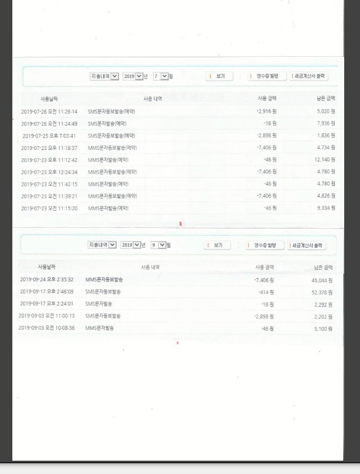 2019년7.1~12.31 슈어엠 발송건 지출내역서 (파일2,캐첩2)