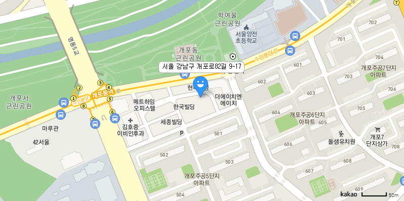 대중교통 : (지하철) 개포동역 6번 출구, 국민은행 안쪽 골목 직진 (3분 거리)